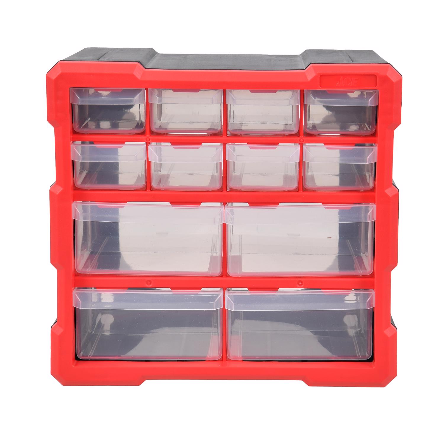 Ace 6.3 in. W X 10.24 in. H Storage Bin Plastic 12 compartments Black/Red